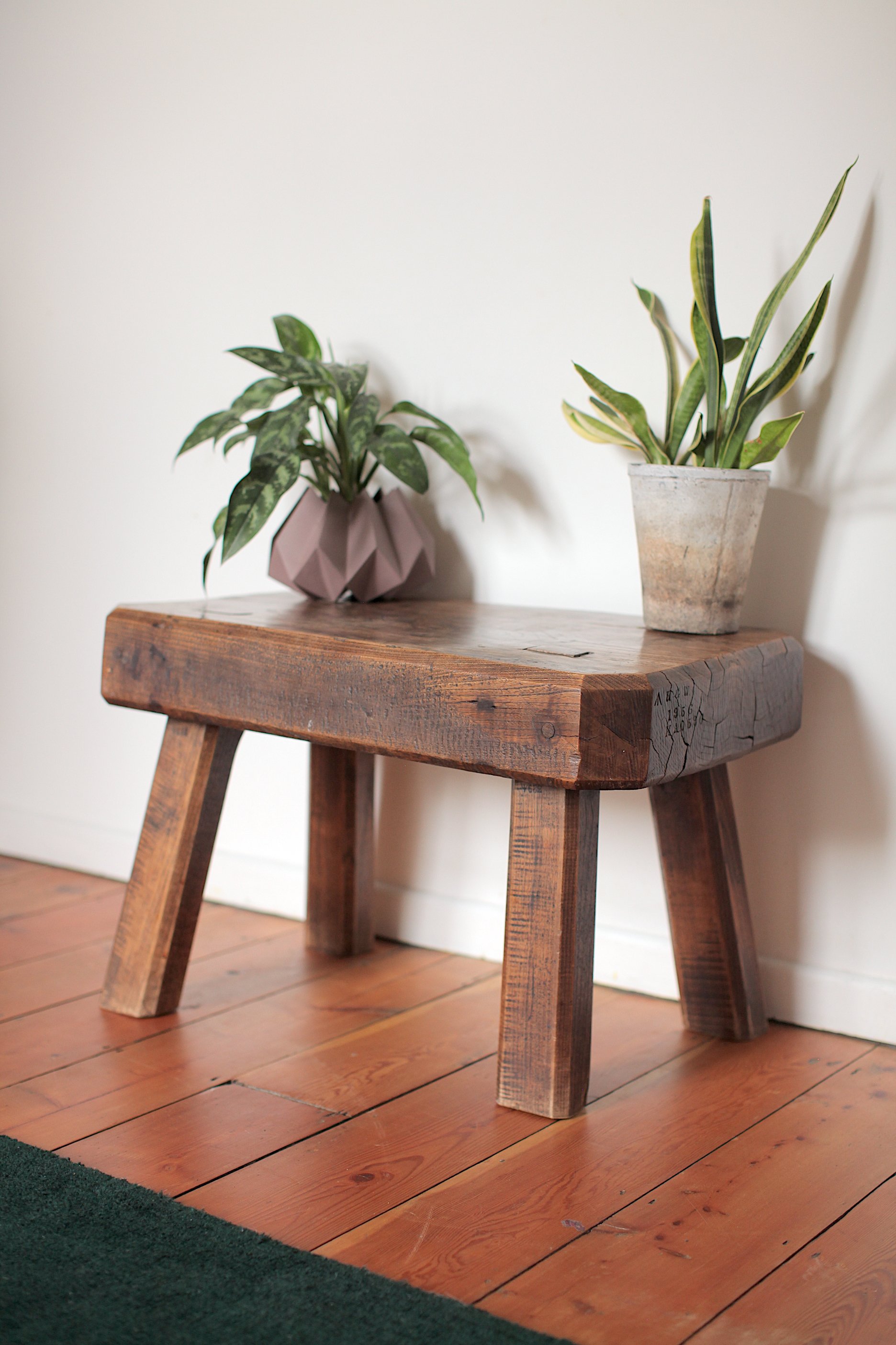 An absolutely beautiful bench / pig bench / coffee table in an incredible solid elm. This piece is stamped in various places with carpenters crows feet along with the detail "H & W" and year "1956".